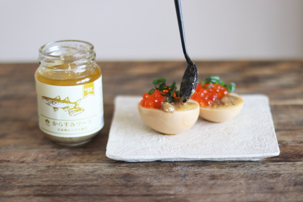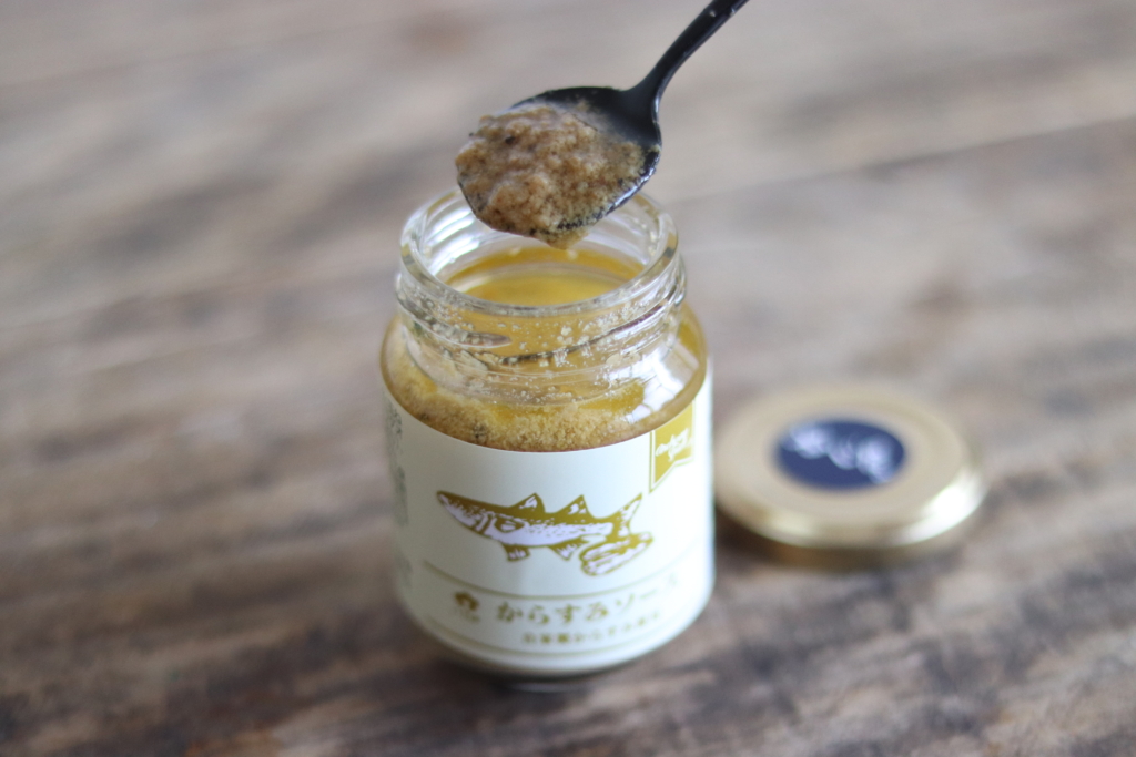 高級食材のからすみですが、こちらのソースは少量から使えてとても便利。クリームチーズやパスタ、スライスした大根や焼き餅、じゃがバターにひとかけなど、実は活躍の幅は広いんです。